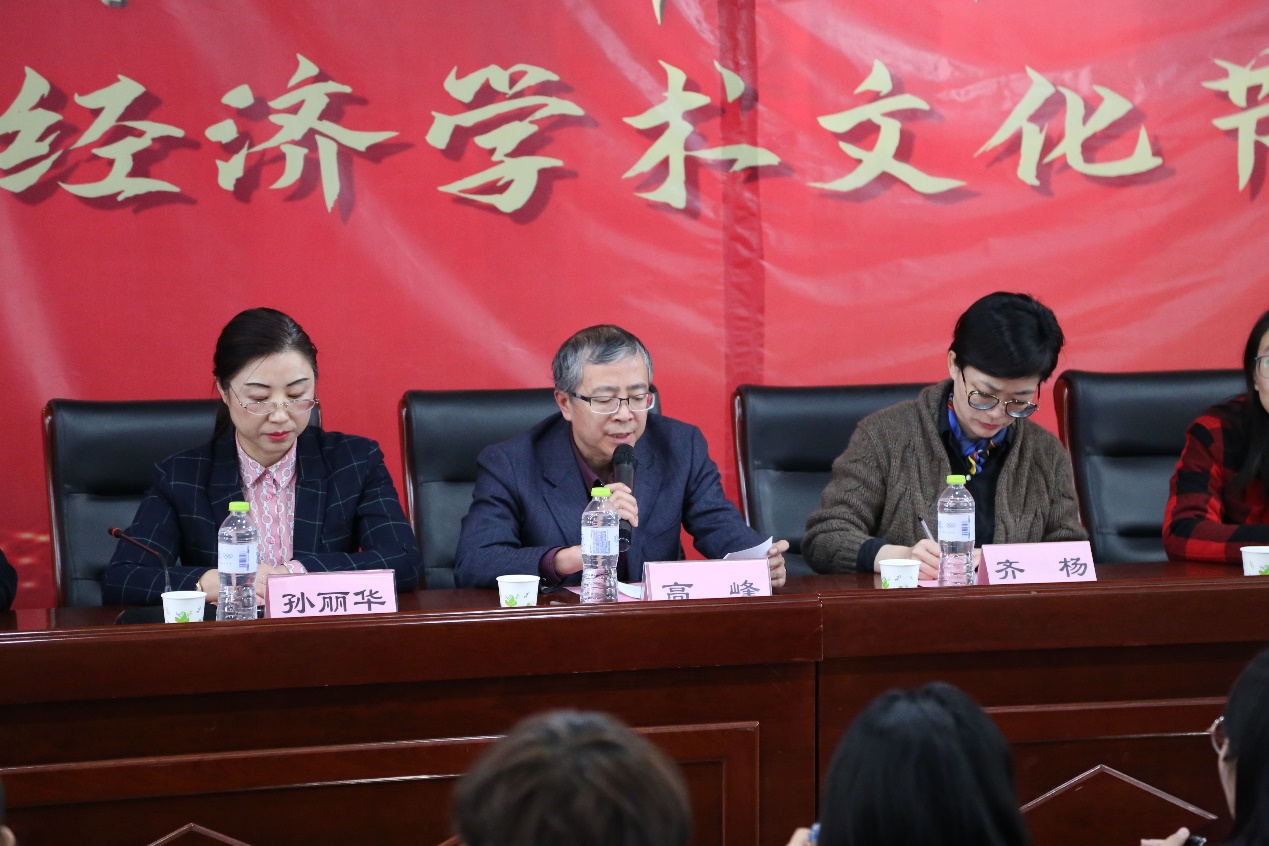 高峰认为,经济学术文化节紧紧围绕学院“厚基础、宽口径、高素质”的人才培养目标,激发学生志存高远、经世济民的时代责任感与历史使命感,推动优良校风学风的建设。他对组织工作提出如下四点要求:高度重视,精心组织筹备;严谨生动,把握正确导向;发挥优势,着力增强吸引力和感染力;善于总结,注重宣传活动成果。希望同学们能够追求“向上、向学、向善”的目标,奋发图强,大胆追梦,以饱满的热情、积极的态度投身经济学术文化节中,展现财大学子的特色和风采,充盈财大的文化内涵。
